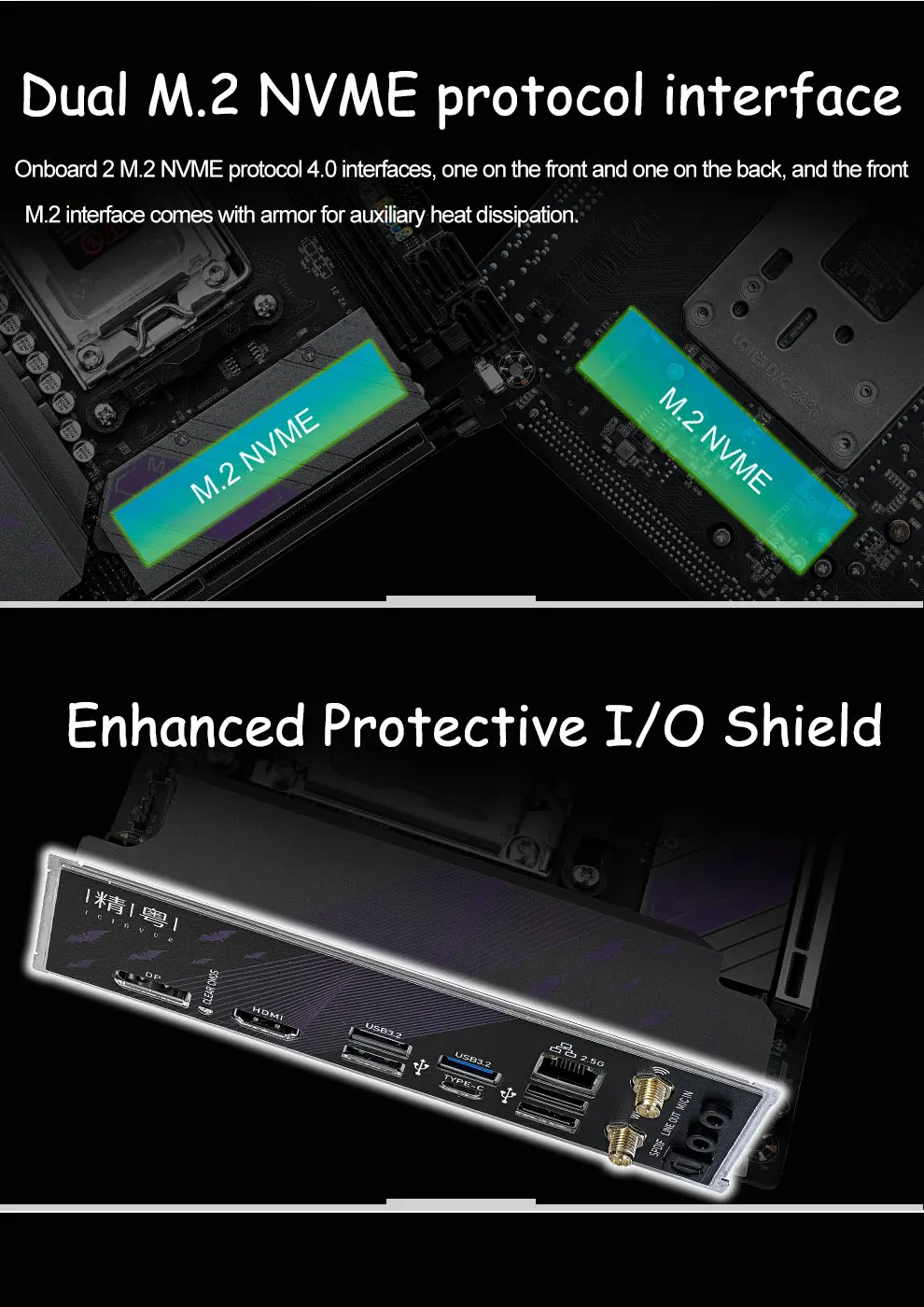 2x M.2 SSD interface: Supports PCI-Ex4.0 NVME protocol (one on the front and one on the back)