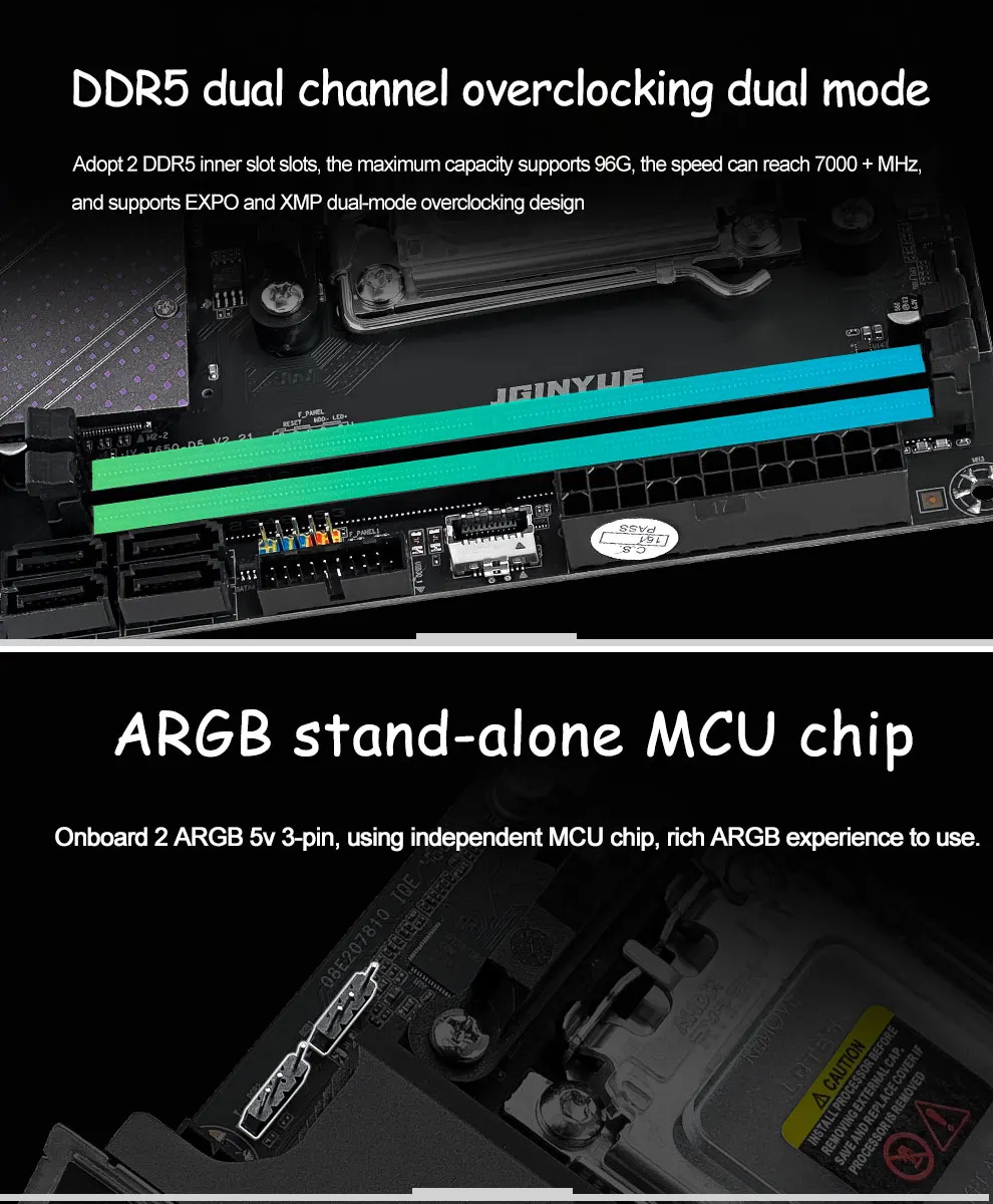 Two DDR5 slots support DDR5 7000+(OC)/6800 (OC)/6600 (OC)/6400 (OC)/6200 (OC)/6000 (OC)/5800 (OC)/5600 (OC)/5400 (OC)/5200 (OC)/5000 (OC)/4800MHz. Supports EXPO/XMP overclocking. Maximum overclocking frequency: synchronization frequency maximum speed up to 6400MHz (synchronization frequency performance is the best, recommended). High frequency division maximum speed up to 7200+MHz